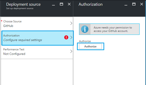 Once selecting source as GitHub, next step is to authorize our Web App with GitHub account to be used.