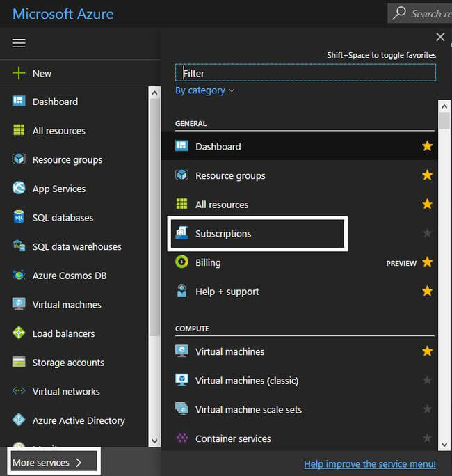 In the dashboard, press "+" and the search for "more services". Then select Subscriptions, as shown below.
