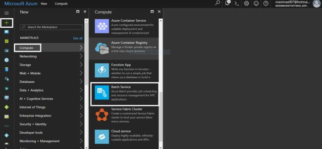 Click New >> Compute and select Batch Service.
