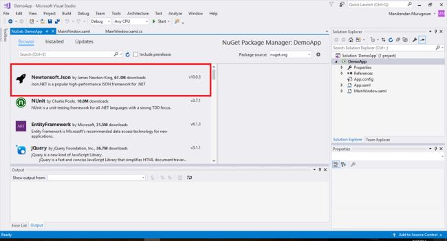 Our project is opened. In the Solution Explorer, we need to add two nuGet packages. Right click on your project (DemoApp) and click Manage NuGet Packages.
