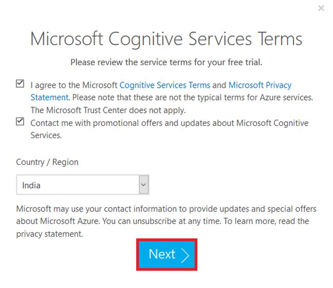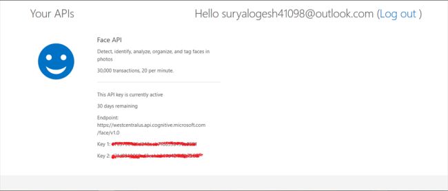 Then, we are going to get the Face API keys that are used in our app. To create the Face API keys,