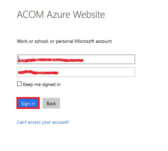 And also, login by givig the email and password to log into the ACOM Azure website.