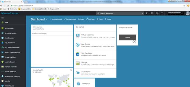 Once you are logged into Azure portal successfully, you will see the following screen.