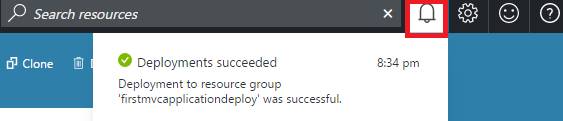 When Azure is finished creating your application, Azure will notify you that your web app is deployed successfully (This does NOT mean that our MVC application is deployed). Notification can be seen by clicking the bell icon in top bar on screen.