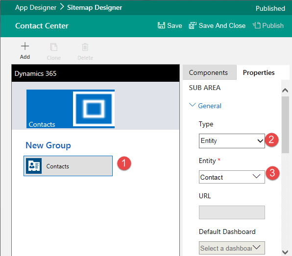 Now, let’s say, we want to design our own custom app, where we want to combine a logical grouping of the existing entities. Let’s suppose that we want to create a custom app called Contact Center, where we want to manage customer contacts. We use steps given below to create our custom app.