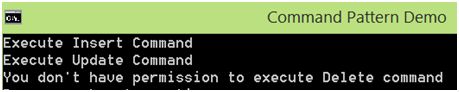 As you can see in the output that Insert and Update commands are getting executed whereas Delete command is not. The reason for Delete command not getting executed is the CanExecute property that is returned as false in DeleteCommand class.