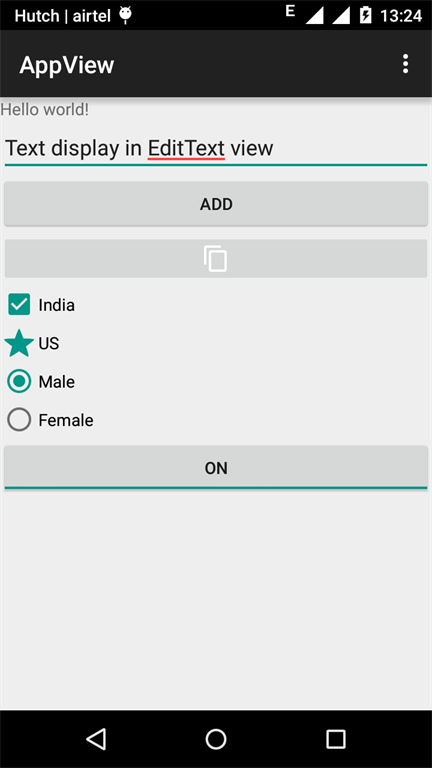 The next View is a subclass of TextView and it is EditText. This View allows the user to edit the text displayed.