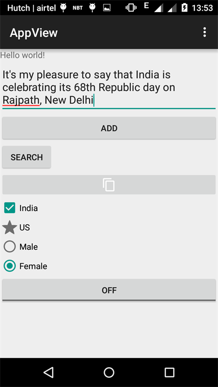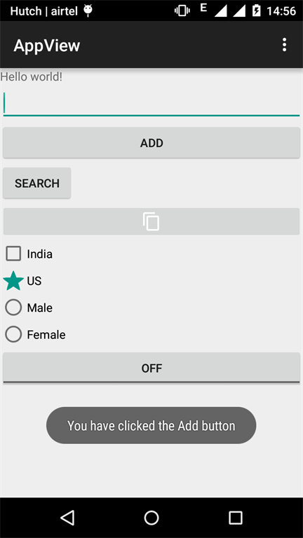Now, add some code as below to handle View events for elements, like Button, CheckBox etc.