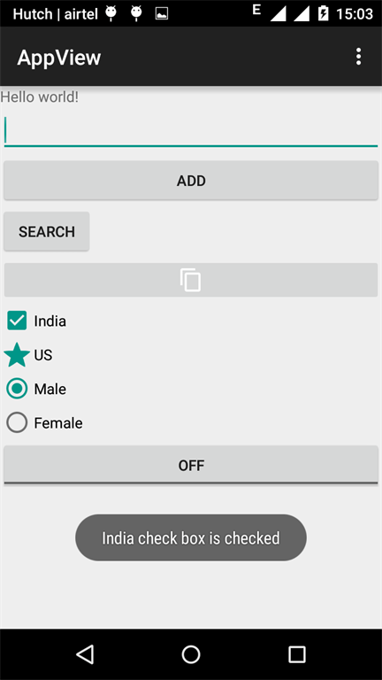 - CheckBox checkBox = (CheckBox) findViewById(R.id.chkIndia);