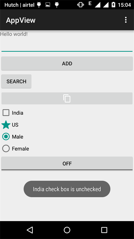 - if (((CheckBox) view).isChecked()) DisplayMessage("India check box is checked");