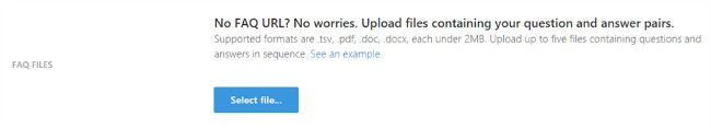 - If no FAQ URL is there for your site, then upload the files containing your question and answer pairs.