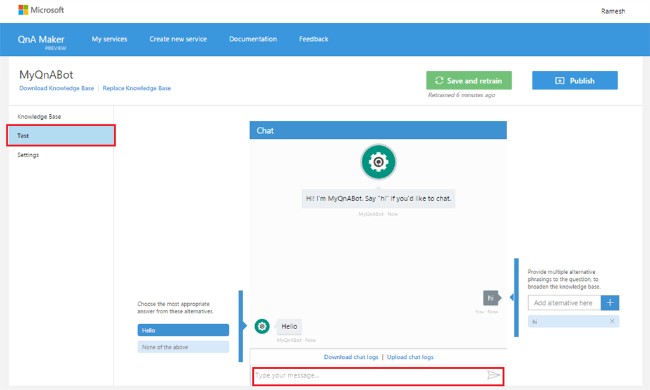 - We can review the changes made to the QnA Bot Service and click on "Publish" button.