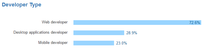 While not being surprised to see that Web Developer was the most prominent role, I was very surprised to see that mobile wasn't next - no, as this position is reserved for the old school desktop development area! .... so much for mobile first over desktop development.