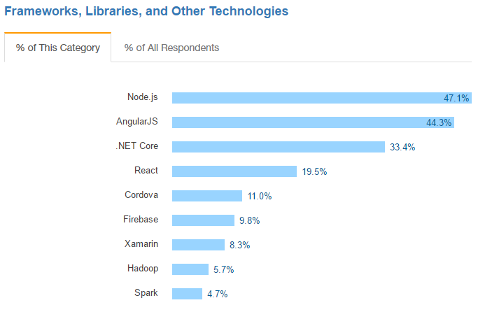 I was surprised to see that .NET Core is already quite far up the framework popularity scale! ... it takes 33% overall while only being a relative newcomer to the scene.
