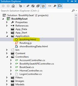 Create a booking.html page under Application folder and paste the code segment, mentioned below in it, as depicted in the image, mentioned below.