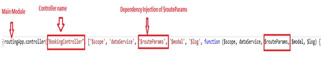 - routingApp.controller("BookingController", ['$scope', 'dataService', '$routeParams', '$modal', '$log', function ($scope, dataService, $routeParams, $modal, $log) {