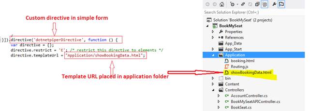 If you notice the code segment, mentioned above, then you will find that there is a custom directive with dotnetpiperDirective placed in bookingcontroller and also placed in booking.html.
