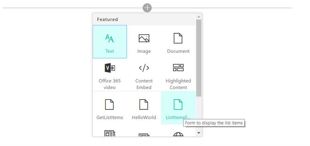 Add the custom web part using the "Add" symbol available on the page. The following snapshot shows the addition.