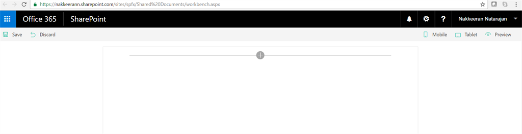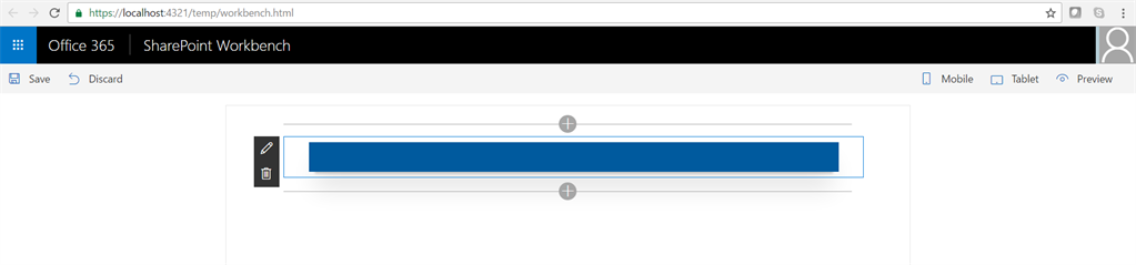 Next, let us check the functionality on workbench file. The workbench file is available on the layouts folder of any SharePoint online site. (https://siteurl/_layouts/15/workbench.aspx)