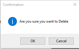 - DialogResult res = MessageBox.Show("Are you sure you want to Delete", "Confirmation", MessageBoxButtons.OKCancel, MessageBoxIcon.Information);