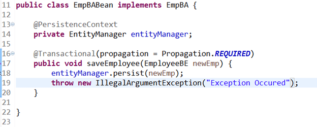 Let’s say, you are not throwing any exception in EmpBABean, as it is being called from EmployeeBABean.java.