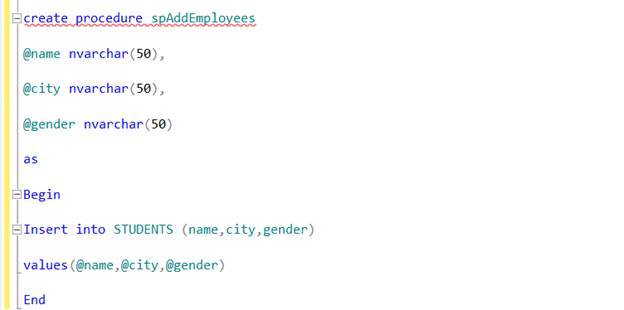 Now, we are getting this error as the name parameter was not supplied. Remember, we have a stored procedure.