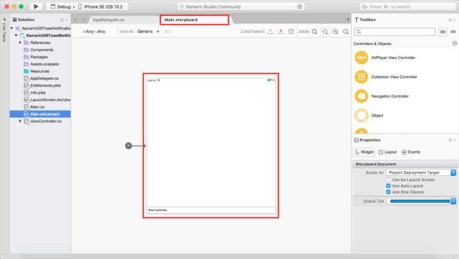 Subsequently, go to the solution. In the solution, get all the files and sources in your project. Now, select Main.storyboard and double click to open Main.storyboard page.