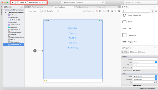 The steps given below are required to be followed in order to display a Toast notification with types in Xamarin iOS, using Xamarin Studio.