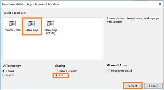 Now, choose Blank App and select forms PCL(sharing). Afterwards, click OK.