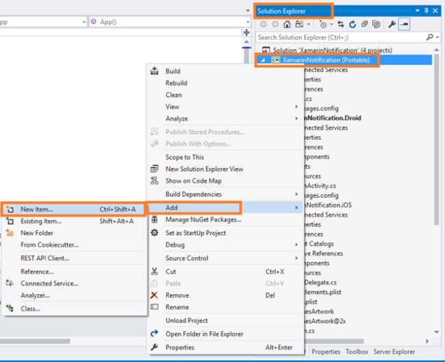 In this step, add one page, whose name is called MainPage.xaml. Go to Solution Explorer-->Your Project-->Portable-->Right click-->Add-->New Item (Ctrl+Shift+A).