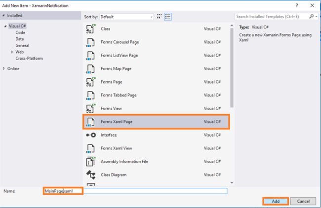 Now, select Forms XAML page and give the name (MainPage.xaml).