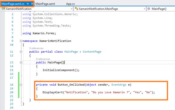 In this step, go to the MainPage.xaml.cs page. Create Button_OnClicked method and write the code given below.