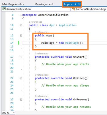 In this step, go to App.cs page. Write the code, mentioned below between Public App() Method.
