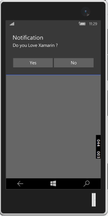 - DisplayAlert("Notification", "Do you want store this Number ?", "Yes", "No");