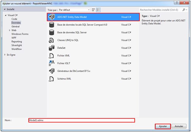 Right click on project name from solution explorer, then Add > New Item > Select ADO.Net Entity Data Model > Add.