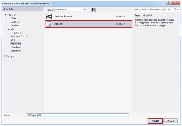 Now, you need to add a report file (.rdlc). Right click on project name and then Add> Add New Item > Reporting > Report > Add.