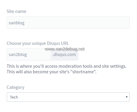 First, we have to register an account and to log into the forum. If we can setup up Disqus on a new site with entering the site name, then one needs to choose unique Disqus URL, a category, and then click Next button.