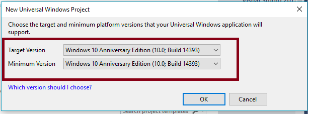 After choosing the target and minimum platform version that your Windows Universal Application will support (Windows Anniversary Update (10.0.14393.0)), the project creates App.xaml and MainPage.xaml.