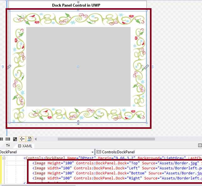 Similarly, set DockPanel Left, Bottom and Right with Image controls.