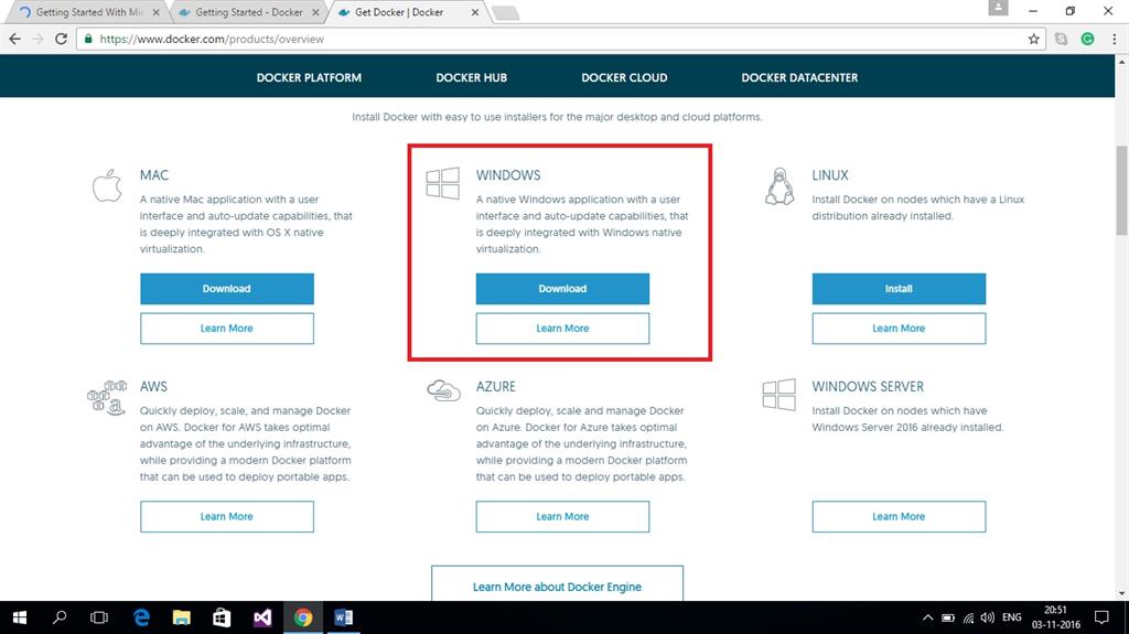 Double click installdocker.msi and start the Docker installation. If you don’t have Docker, by clicking download Docker, you can download Docker.