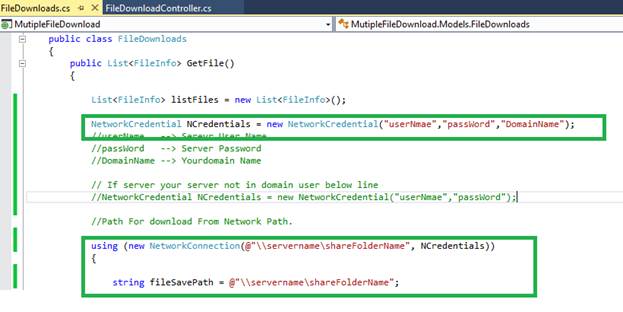 Note- I have attached the source code in this article. After downloading the source code, change your Server credential and shared path in FileDownload.cs file and run will be executing successfully.