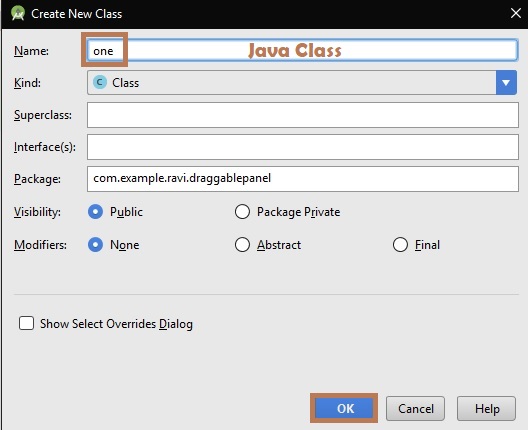 In this step, go to app >> Java >> domain name right click to add >> new >> Java Class. After that, open the Dialog Box and Click ok then again add another one page (Page Name: one, two), the java code will appear. I have provided the code; you can use this code or you can use your own code.