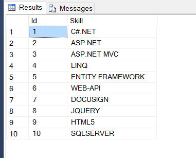 - INSERT [dbo].[Dropdown] ([Id], [Skill]) VALUES (2, N'ASP.NET')