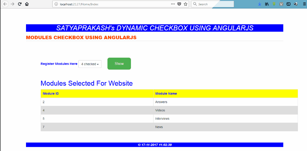 Here, I will show you how checkbox works dynamically in drop-down list using AngularJS in ASP.NET MVC. Multiselect dropdown with checkboxes is used to use a dropdown like a feature that can select multiple values.