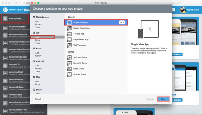 Click New Solution—> select Multiplatform—> Choose Single View app. Native(iOS, Android). Afterwards, click Next.