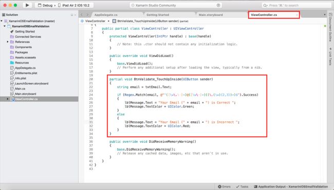 The steps given below are required to be followed in order to validate an Email address in Xamarin iOS, using Xamarin Studio.