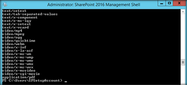 As an alternative, we can add PDF (by default it is added) to the web application’s trusted MIME Type List. If the MIME type is added to the trusted list, even if the Browser File Handling is set to ‘Strict’, it will not prevent the file from opening in the browser. We can get the list of Trusted MIME types by running the ‘SPWebApplication.AllowedInlineDownloadedMimeTypes’ command.