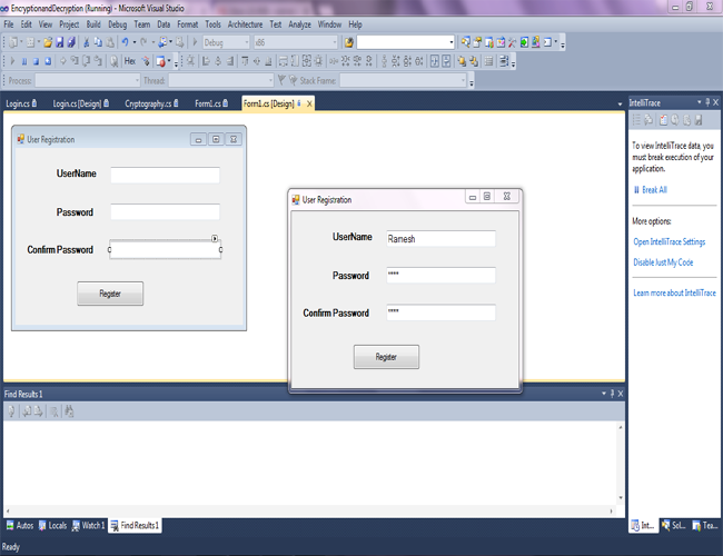 Here, I have created my project and named it as "EncryptionandDecryption". Now, we will design our user registration form for registering new user credentials.