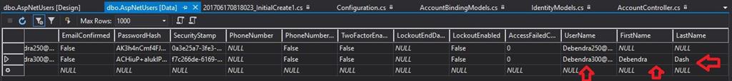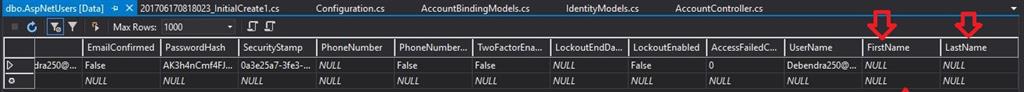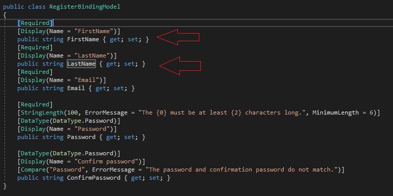 - var user = new ApplicationUser() { UserName = model.Email, Email = model.Email,FirstName=model.FirstName,LastName=model.LastName };