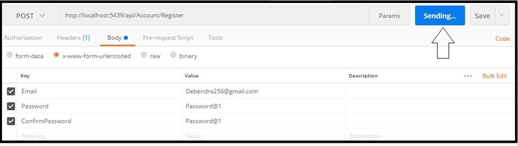 As we see, the API for Register User has been created, we can test the API in Postman like this.